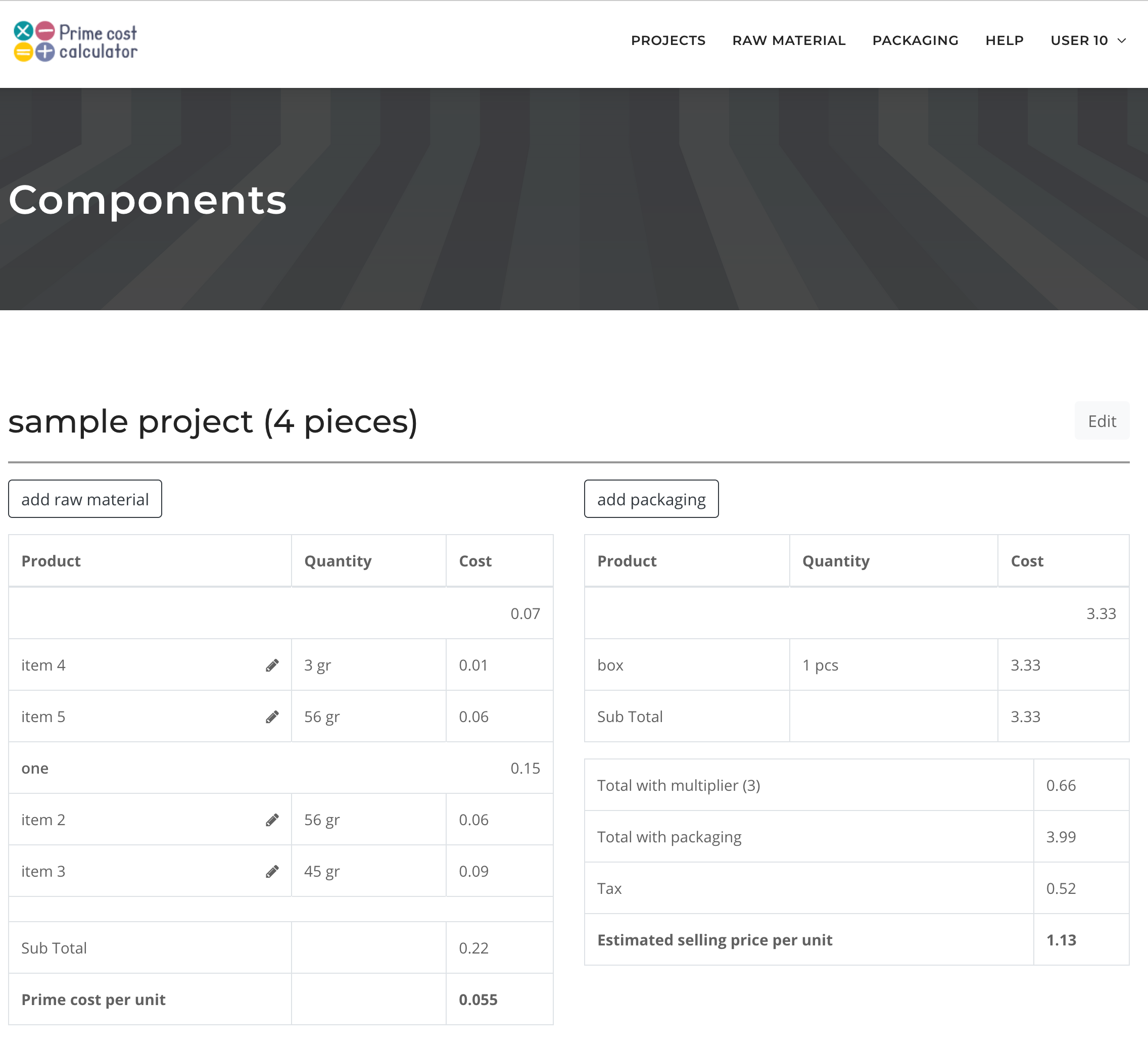 Prime cost calculator